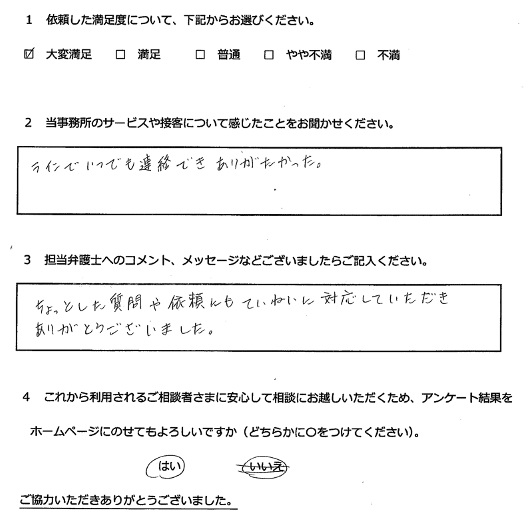 「ラインでいつでも連絡できありがたかった。」